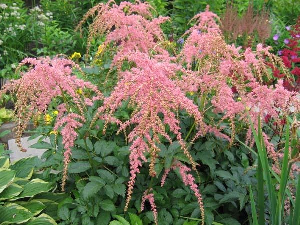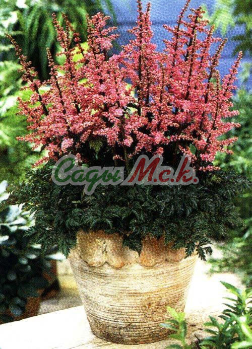 Саженцы астильбы Strаussеnfеdеr – шикарные декоративные кусты с элегантными поникающими кисточками-соцветиями, эффектно оттеняющими темную блестящую зелень листвы. Нежные розово-коралловые цвета позволяют насладиться своей красотой в июле-августе. Цветение очень долгое и невероятно пышное. Впрочем, роскошный куст этого растения сохраняет декоративность весь сезон. Саженцы данного сорта следует размещать в полутени.