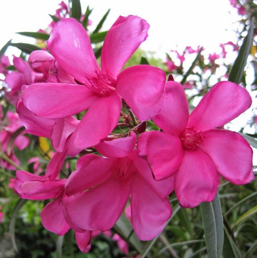 Олеандр обыкновенный Париж (лат. Nerium oleander Paris) - теплолюбивый быстрорастущий кустарник. Стебли у сорта мощные. Листья очень тонкие и длинные, темно-зеленые, почти черные. Цветки душистые, крупные, ярко-розовые. Лепестки длинные, закругленные. Внимание! Олеандр - ядовитое растение, поэтому при его культивировании требуется осторожность.